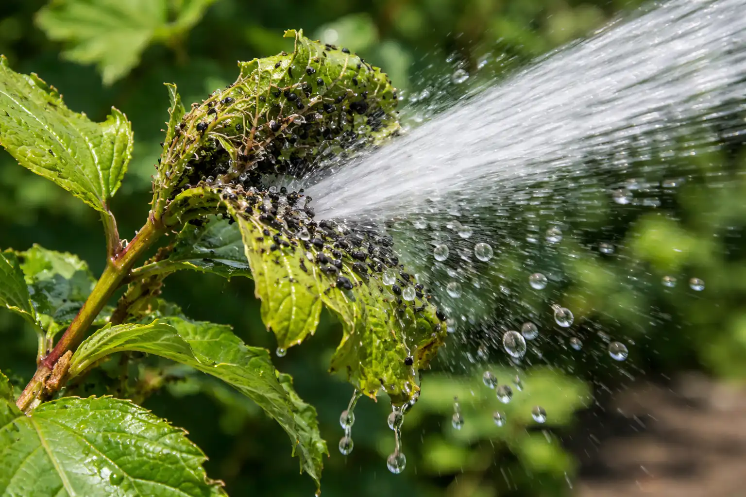 La prima cosa che faccio rimozione meccanica afidi. Se gli insetti sono pochi, è sufficiente lavarli via con un forte getto d’acqua da un tubo. Questa operazione deve essere eseguita con attenzione per non danneggiare i giovani germogli. È efficace anche raccogliere gli afidi a mano, utilizzando dei guanti.
