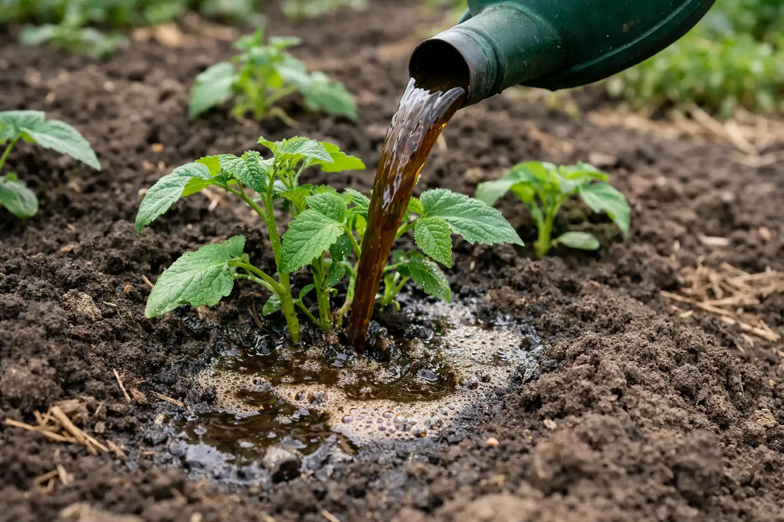 Assicuratevi di diluire l’infuso con acqua prima dell’uso e di annaffiare sul terreno umido.